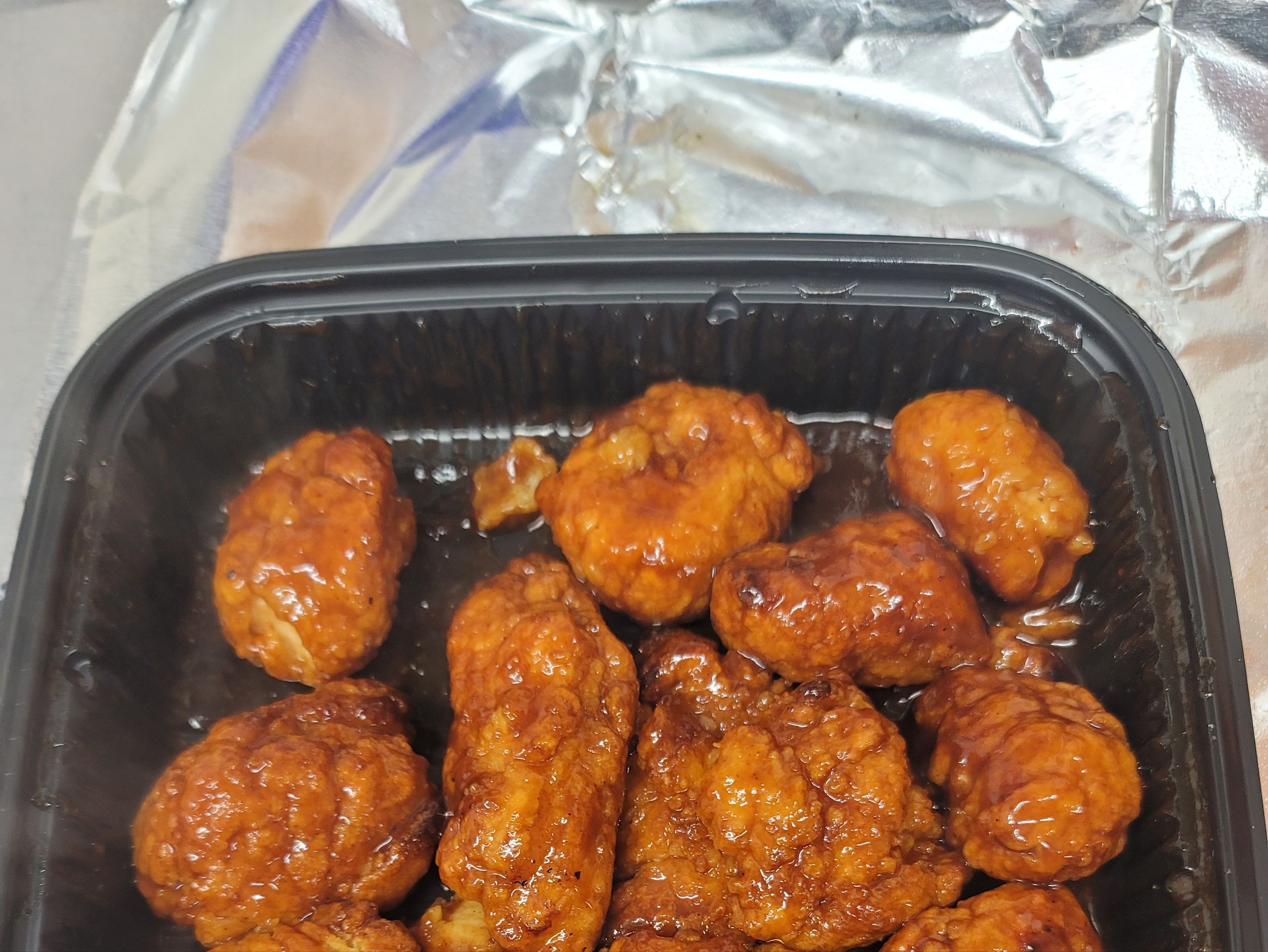 12 yummy boneless wings with your choice of sauce off BBQ, garlic parmashon or buffalo.